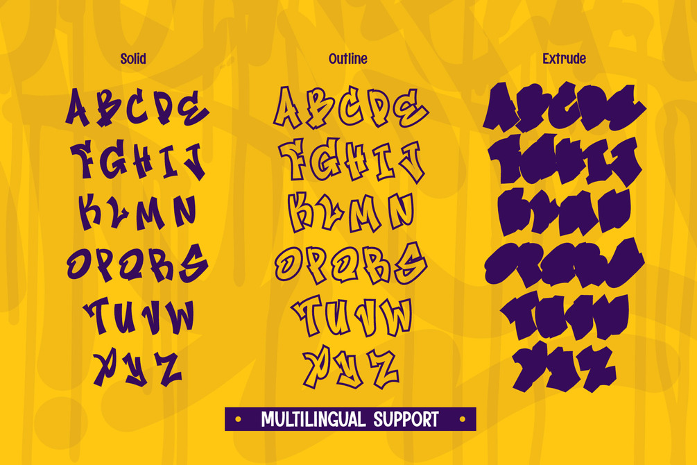 Edge Bolt is a bold and dynamic 3D layered graffiti font featuring sharp and thin characters that bring an electrifying street-style aesthetic to your designs. This font comes with three distinct layers—Solid, Outline, and Extrude—allowing you to create eye-catching depth and dimension effortlessly. Whether you're designing for streetwear branding, posters, digital artwork, or urban-themed projects, Edge Bolt delivers a striking and edgy look. With its layered versatility, this font makes it easy to mix and match styles for a unique, high-impact visual experience.