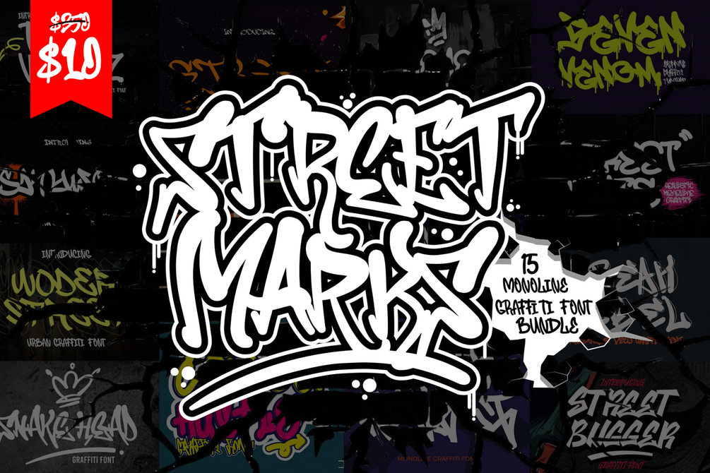 Best Price – Street Marks: 15 Monoline Graffiti Font Bundle